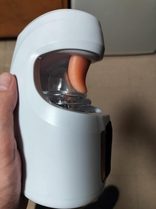 This is by far the best male masturbator Ive used! The sleek white design with the metallic button area makes it look really premium, and it feels just as good. The thrusting action is incredibly smooth, and the tongue-licking feature at the tip really adds a new level of pleasure. Its easy to use, with buttons that are intuitive and responsive.